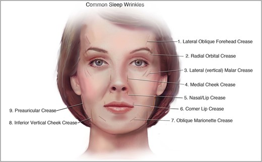 (图源:academic.oup.com)睡眠皱纹是由于睡眠位置和SMAS(筋膜层)凝结的部位而形成的,在侧睡或者俯睡期间,面部组织受到压缩和拉伸机械力的影响,因机械压迫导致皮肤变形,从而导致睡眠皱纹的产生。外力(包括压力、张力和剪切力)作用于面部组织