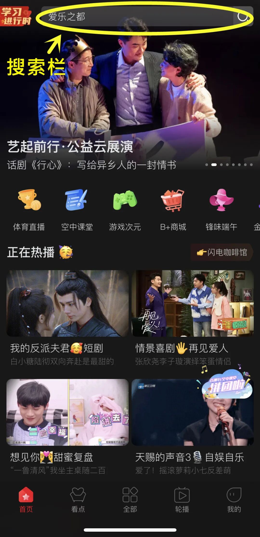 ■ step1:打开百视TV APP,进入主页面,找到搜索栏,点击进入。↓↓↓