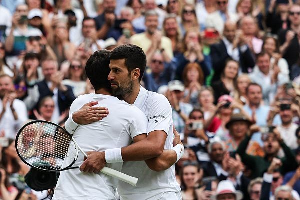 “你打得太好了,从发球到不懈的跑动,你值得这场胜利。很高兴看到你从法网的红土到温网的绿草,都能如此无缝地衔接,取得如此成就。祝贺你!”德约科维奇赛后说,“失误并不好受,当然我也赢得了非常多非常多的比赛,所以我也该到了输一场决赛的时刻了。虽然我的孩子就看着我输球,但这就是网球。”