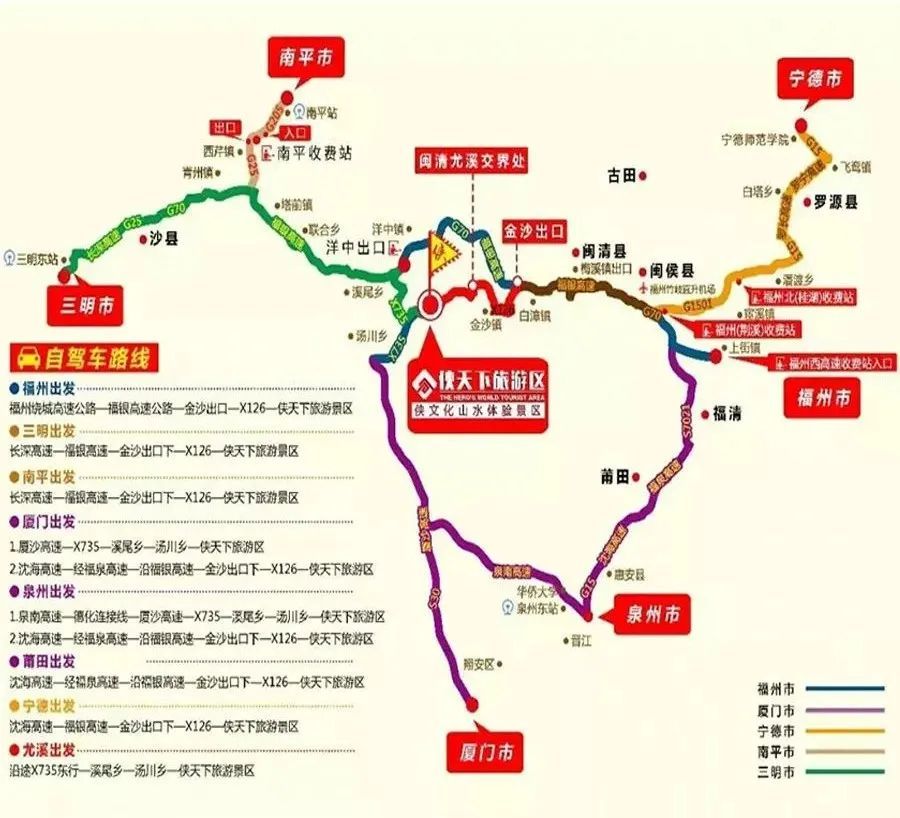 动车路线:抵达【尤溪站】——搭乘尤溪8路/2路——【尤溪汽车站】——搭乘尤溪往侠天下的班车(班次:8:20、12:20、14:00、15:30)——【侠天下旅游区】