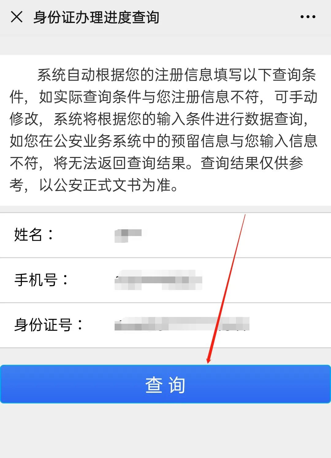 线上查询身份证办理进度的办法: