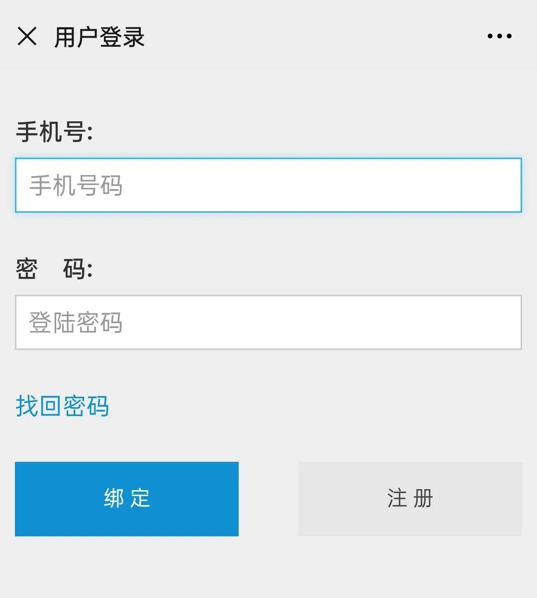 第四步,接着输入手机号、密码登录;(未注册的用户点击“注册”,先注册再登录)