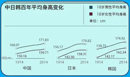 喝牛奶和整体营养的改善,让战后的日本人后代茁壮成长,最大的变化就是身高显著提升。据1914~2014年这100年数据记载,日本成年人身高提升很多,其中男性身高增加了14.65cm,女性身高增加了16.01cm!