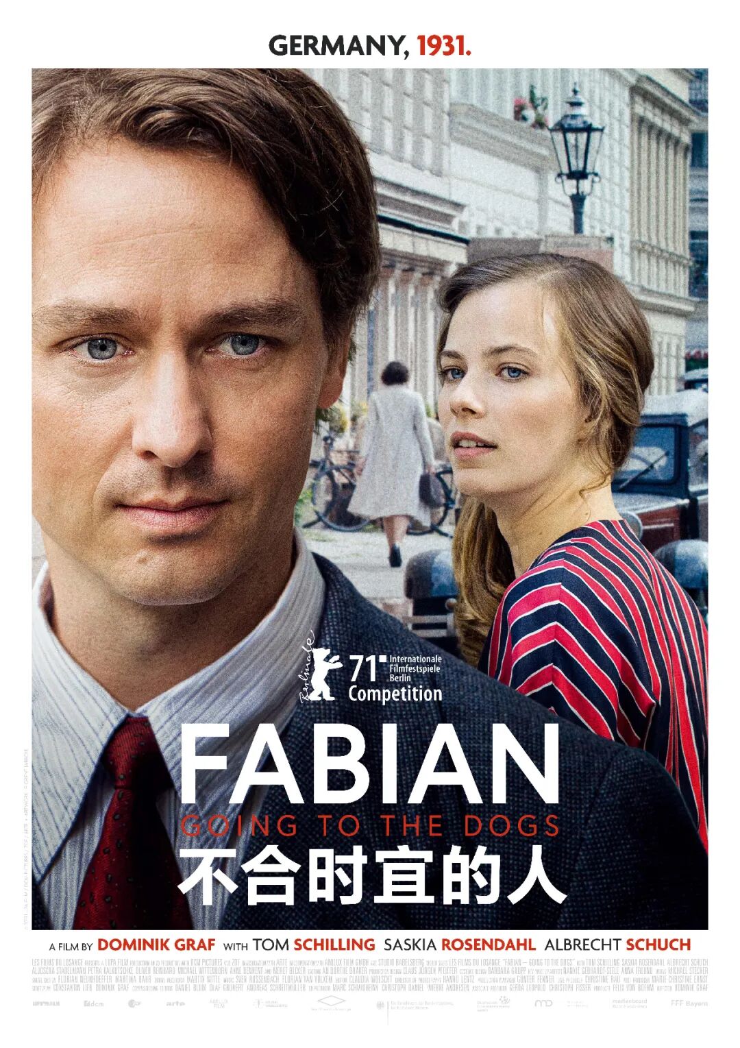 不合时宜的人 | Fabian – Going tot he DogsFabian oder Der Gang vor die Hunde多米尼克·格拉夫 | Dominik Graf德国 | 2021年 | 剧情 | 178分钟德语,中文字幕德国电影分级:12岁2021年柏林国际电影节:主竞赛单元最佳影片(提名)2021德国电影奖:最佳剧情片银奖,最佳摄影、最佳剪辑金奖,及其他7大奖项提名主演汤姆·希林出席11月6日场次映后线上交流!