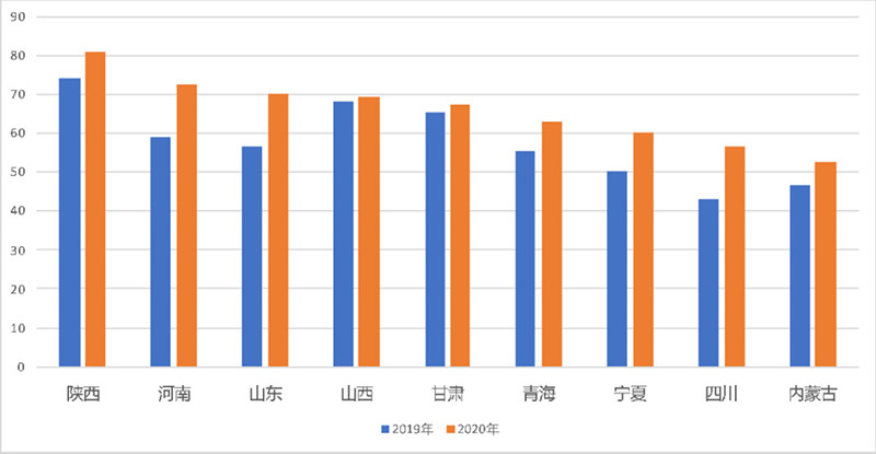 由于各地对黄河旅游带的重视及参与度的差异,黄河旅游在沿黄各省域内的发展成果、传播影响力、品牌知名度等方面存在着较大的差距,整体来看,陕西、山西、甘肃、河南等地区的黄河旅游发展指数较高,内蒙古、四川等地区相对较低。
