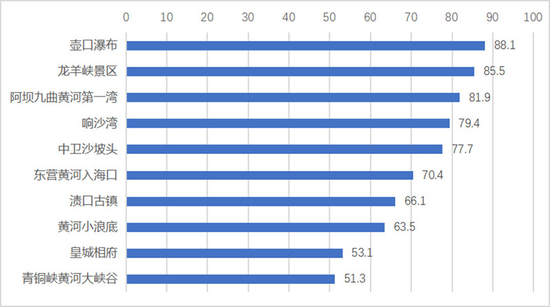 通过对黄河旅游的资源、旅游政策和管理、全域旅游的环境、旅游线路产品的丰富性、旅游市场秩序、旅游传播与口碑等综合评价的结果,黄河流域9省区的黄河旅游发展指数排序如下: