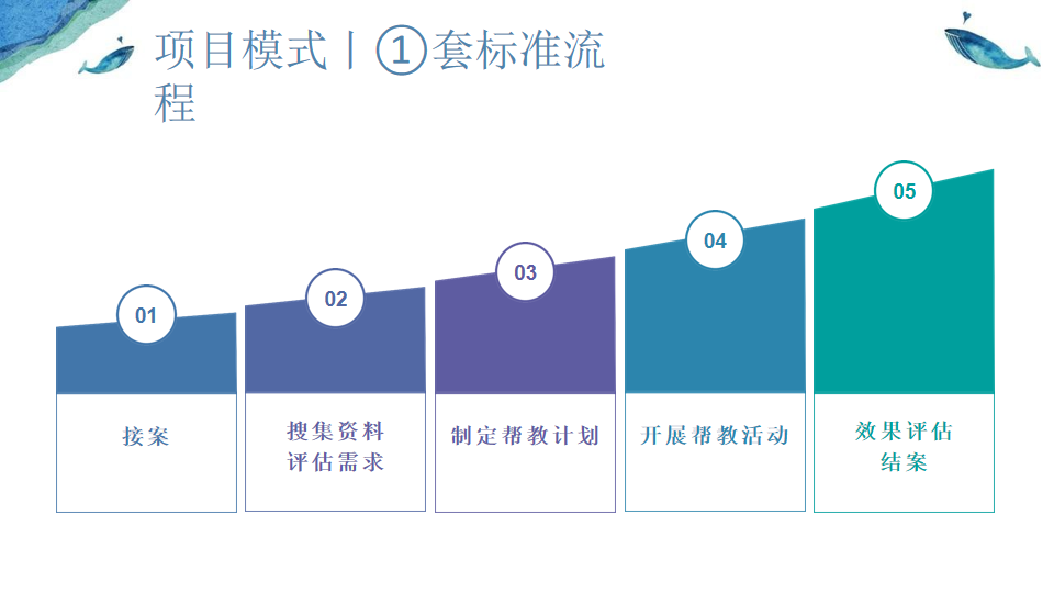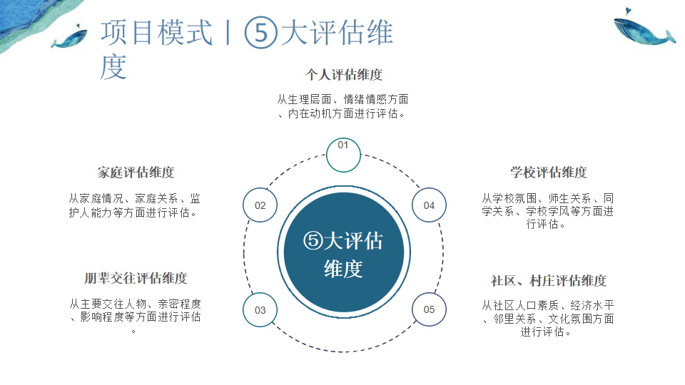 项目创新性地探索出一条符合青少年心理、社会发展的帮扶矫正模式,主要包括一套标准流程、五大评估维度、三大工作方法、四个主要目标。从专业化的接案、评估、制定计划、开展活动、效果评估,到以青少年个人、家庭、朋友交往、学校关系、社区/村环境为核心,分析对其行为、情绪、观念产生影响的主/客观因素,最终结合具体情况开展个性化帮扶。