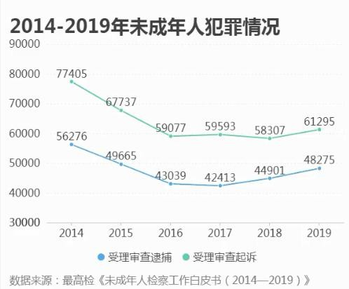 2020年,全国检察机关共受理审查逮捕未成年犯罪嫌疑人37681人,受理审查起诉54954人,经审查,批准逮捕22902人,不批准逮捕14709人,提起公诉33219人。