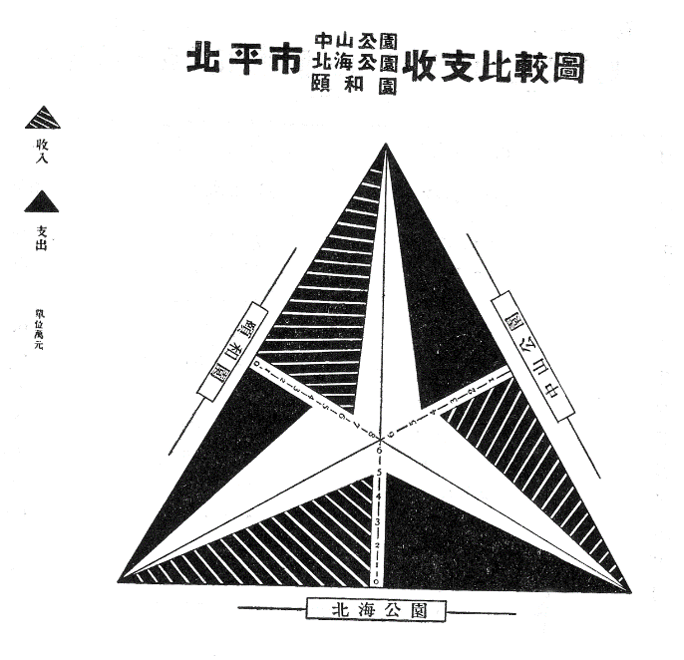 由北京三所经过改造向公众开放的园林在1936 年的收支情况统计可以看到,随着地理方位、公园大小、“游园”的趣味和社会意义的不同,它们的境遇并不相同,位于城区的中央(中山)公园有着最少的特别“景致”,受公众欢迎的程度并不亚于其他园林,但是收入最少,支出则与其他园林相仿