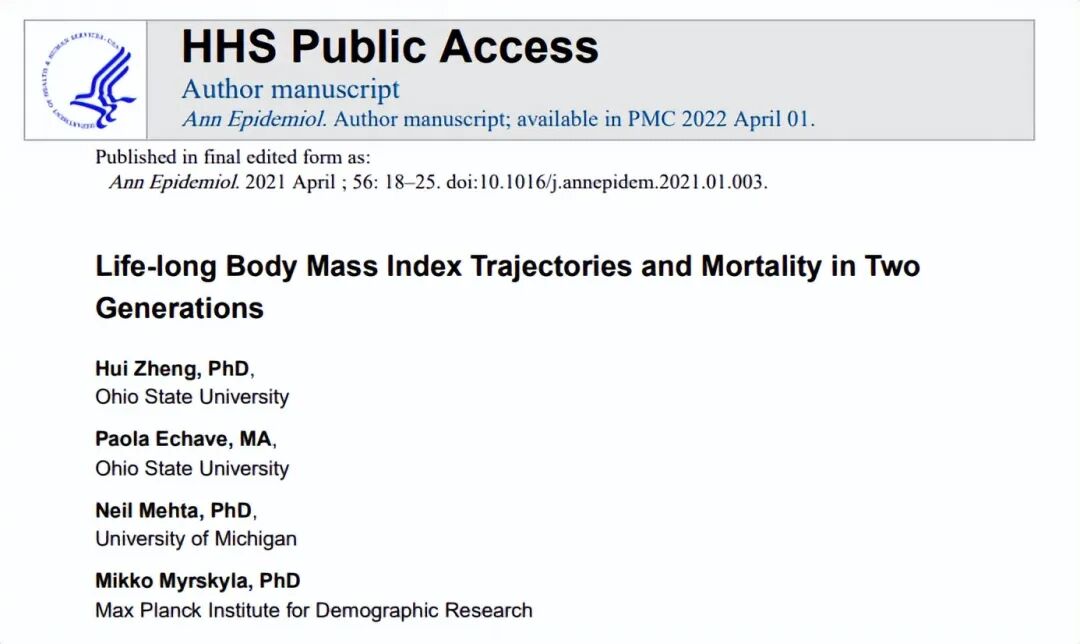 2021年,美国医学权威期刊《流行病学年鉴》刊发了一项长达73年的研究成果,研究员最终发现:如果年轻时可以维持正常体重,那么在晚年体型微胖的老人,死亡率更低。