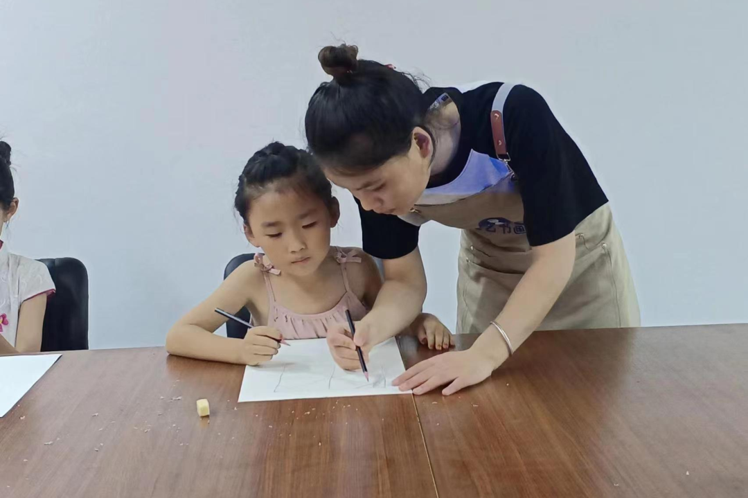针对爱静的女孩子组织了绘画活动。课程正式开始之前,志愿者提供纸张和铅笔给孩子们,以精彩的导语将孩子们快速带入课堂内容。课堂上,志愿者教给孩子们如何使用铅笔绘画,并发挥自己的想象力,大胆下笔进行创作。通过绘画创作,来启发和诱导孩子们去感知事物的外形、结构,有利于右脑的发育,让孩子们可以得到全面发展。