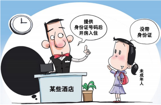 《未成年人保护法》第五十七条规定:“旅馆、宾馆、酒店等住宿经营者接待未成年人入住,或者接待未成年人和成年人共同入住时,应当询问父母或者其他监护人的联系方式、入住人员的身份关系等有关情况;发现有违法犯罪嫌疑的,应当立即向公安机关报告,并及时联系未成年人的父母或者其他监护人。”