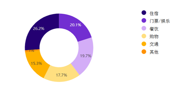 在出游花销中,26%的Z世代住宿花的最多,门票/娱乐、餐饮紧跟其后