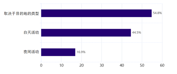 Z世代会根据旅游目的地来决定是白天出去玩还是晚上出去玩,虽然夜经济很火,但白天仍是主要活动时间