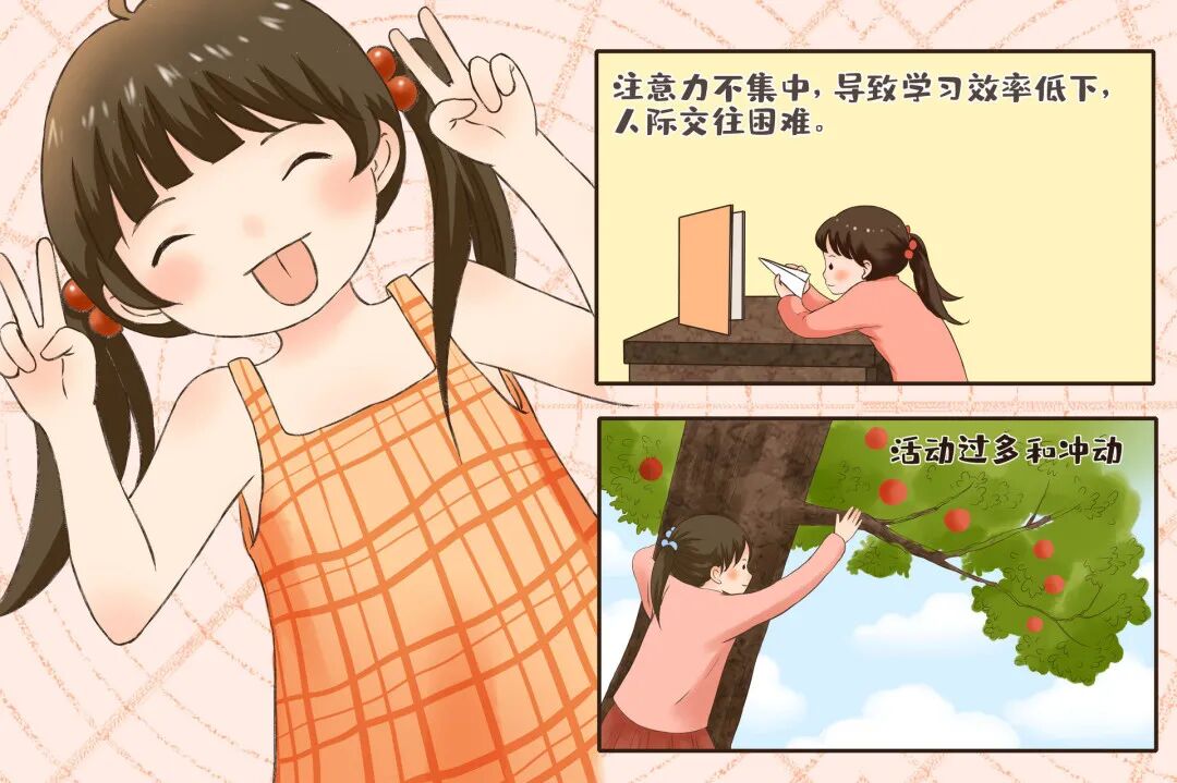患儿主动注意减退,被动注意增强,表现为注意力不集中,上课不专心听讲,易受环境的干扰而分心,注意对象频繁地从一种活动转移到另一种活动;做作业时不能全神贯注,做做玩玩,粗心草率;做作业拖拉,不断地以喝水、吃东西、小便等理由中断,做作业时间明显延长。