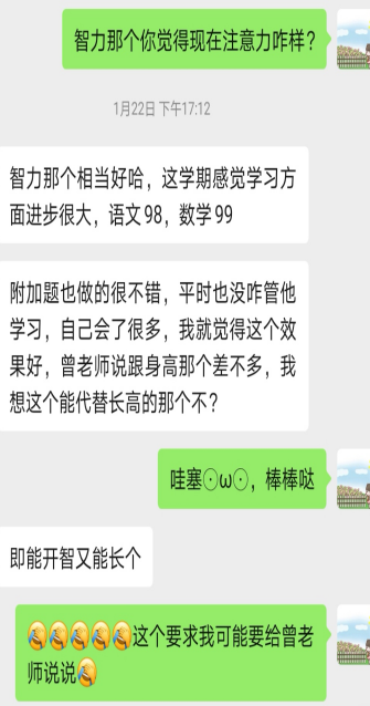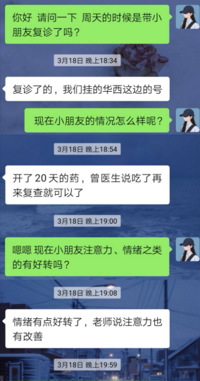 (患儿妈妈表示情绪和注意力均有改善)