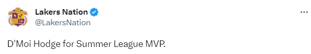 美媒也夸赞霍奇,称他就是今年夏联的MVP,名记Trevor Lane直言霍奇在攻防两端都表现出色。