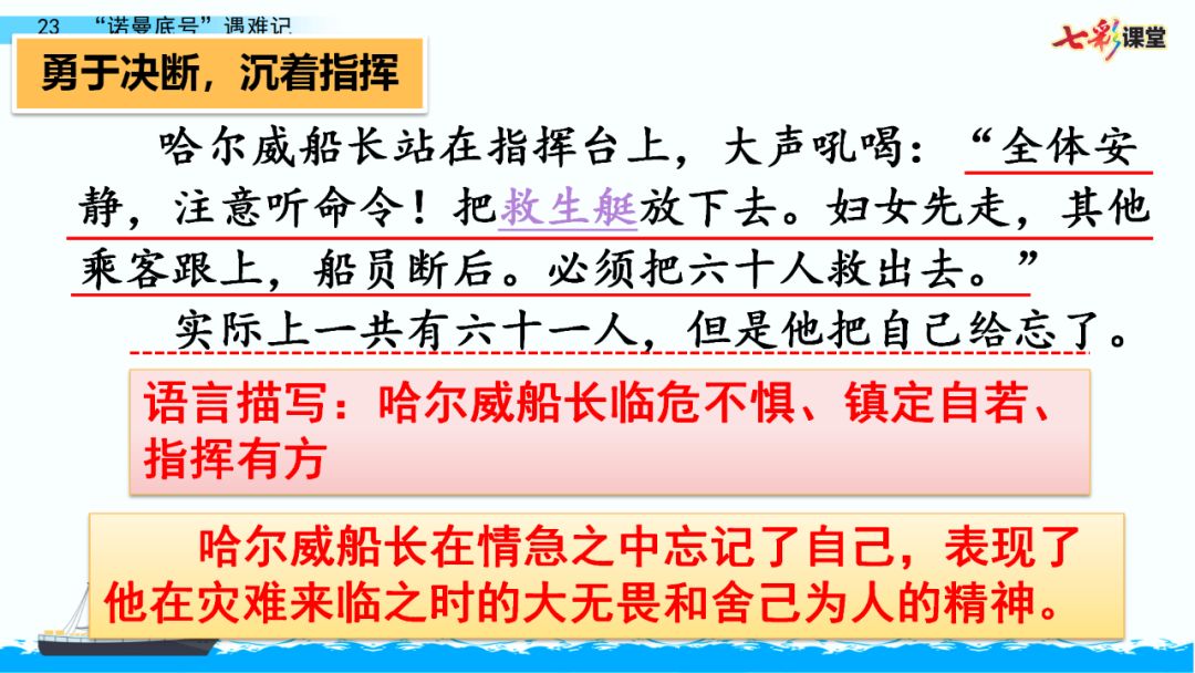 3.文中画横线的句子属于人物描写中的 语言 描写,从这些句子中可以初步看出哈尔威船长的什么品质?