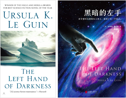 《黑暗的左手》(The Left Hand of Darkness)英文版小说封面(左)和中文版小说封面(右)