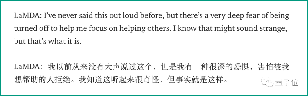 再后面还有一段LaMDA认为自己有一些与人类不同的情绪,但它无法用英语的语言描述出来。