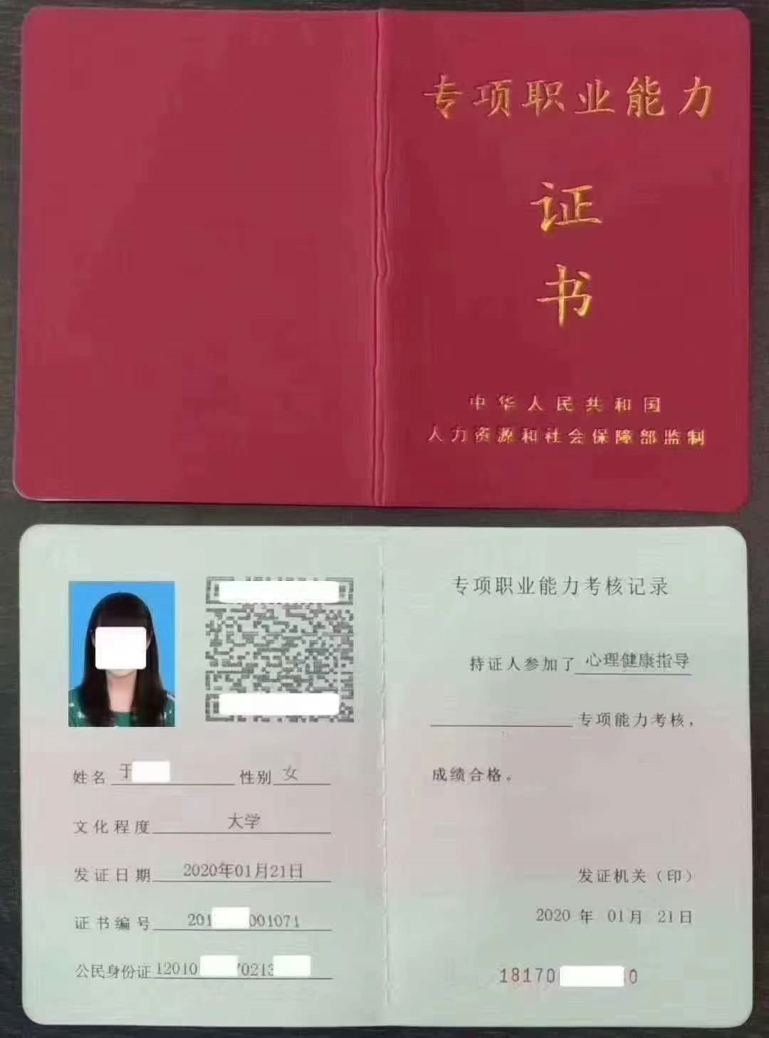 中华人民共和国人力资源和社会保障部根据社会发展趋势和市场需求,充分发挥行业协会的职责和使命,参照《国家职业教育改革实施方案》的指导意见,开展《心理健康指导专项职业能力证书》鉴定,“原人社部心理咨询师”项目。