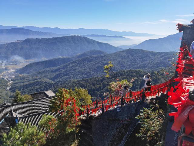 登云峰山一定要在早!开门的时候就进去,坐缆车登顶,看环绕山间的云海云雾,朝霞散入云间宛如登上仙境,漫步云端,听僧侣唱经念佛,梵音入耳,洗涤身心,求一条红绸,写下心愿,祝世间太平!