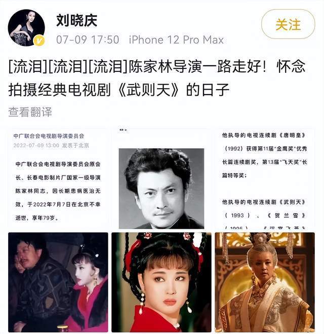 直到看到热搜,还有刘晓庆她们的悼念微博之后,才反应过来,他是《武则天》《唐明皇》的导演。