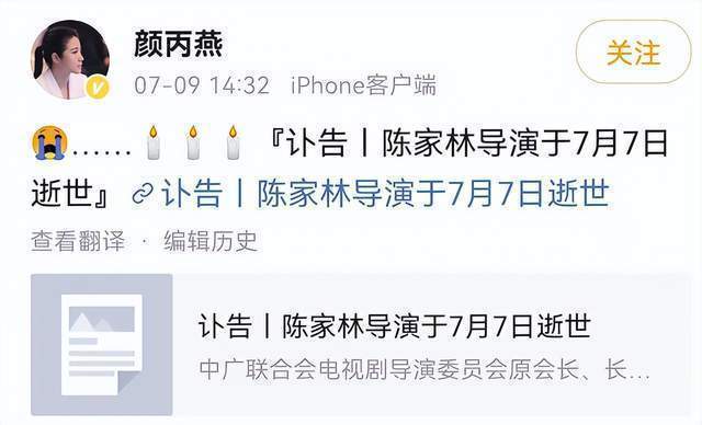 陈家林导演去世的消息,扒姐是在颜丙燕的微博看到的,开始只觉得这个名字很熟悉。