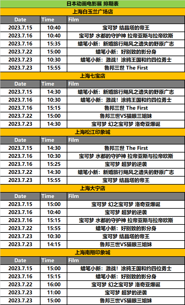 CCG EXPO·日本动画电影展映嘉年华将于7月14日-7月24日在CGV影城上海大宁店、上海七宝店、上海白玉兰广场店、上海南翔印象城店、上海松江印象城店等5家影城同时展映。