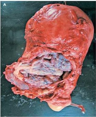 避开胎盘,于胎盘上方取纵切口切开子宫