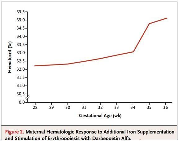 ●29w开始应用阿法达贝泊汀300ug每两周一次来促进红细胞生成。