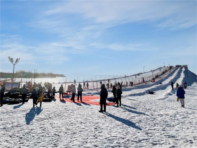 乌海湖冰雪世界设有雪圈、雪板两条雪道,全长100多米。在蓝天之下,白雪之上,追风逐雪舒展身体,体验速度与激情,是本地市民和外地游客冬季休闲娱乐的最佳去处。
