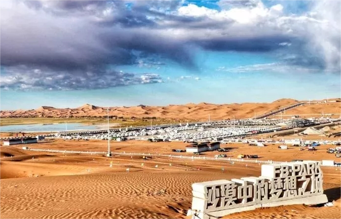 阿拉善梦想沙漠汽车航空乐园景区位于腾格里沙漠东部,距离阿拉善左旗巴彦浩特镇西南51公里处,是国家AAAA级旅游景区,内蒙古首批国家体育旅游示范基地,2013年被确定为“阿拉善英雄会”永久举办地,其电子音乐节、各类沙漠挑战赛、美食节、航空表演、民族演艺等业态每年如期而至,成为越野爱好者打卡的首选之地。现已逐步发展成为集竞技运动、文化展示、音乐美食、沙漠探险、度假体验于一体的“百万级流量”国际旅游品牌,成为对外宣传阿拉善文化旅游的一张亮丽名片。