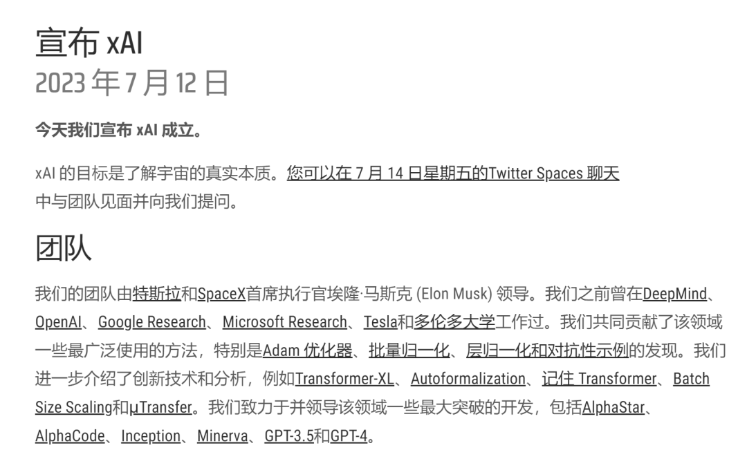 不过,如果一款AI有了探索宇宙的能力,那马斯克所反对的OpenAI能做的事,xAI是不是也能做呢?看看xAI的组建过程和一部分落地场景,我们能发现xAI倒也没有那么“与世无争”。