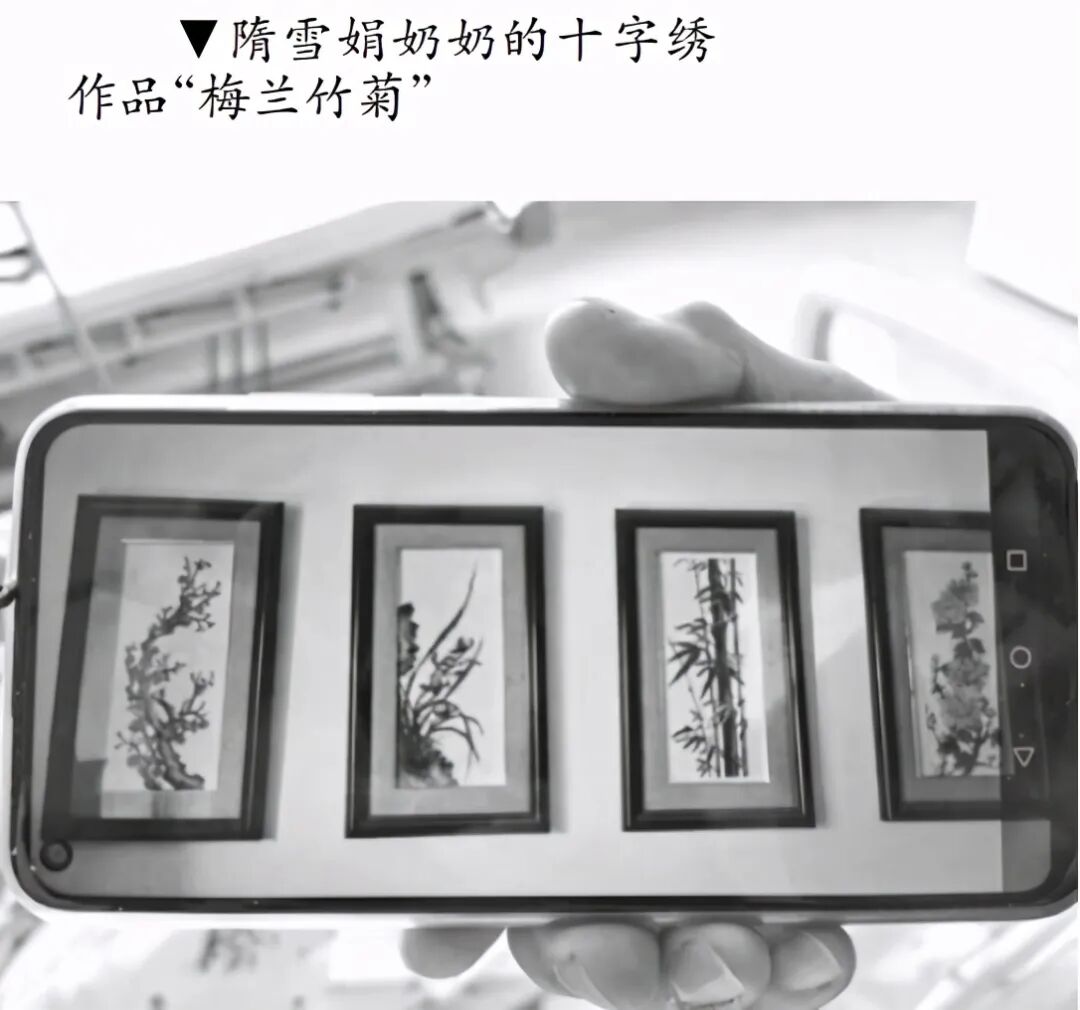 第二天再查房时,隋奶奶果然让家人把自己的十字绣作品传到手机上给王主任看,手机上,除了十字绣照片,最多的就是隋奶奶重孙子的照片。