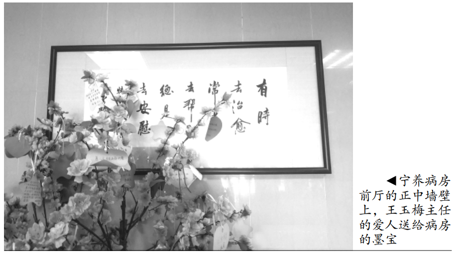 学习归来,王玉梅在盛京医院宁养院、疼痛科、肿瘤科轮转学习,为筹建宁养病房做准备。2008年6月,王玉梅任病房主任,宁养病房正式成立!