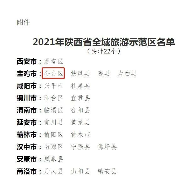 12月8日,省文化和旅游厅公示省级全域旅游示范区入选名单,金台区成功通过省级验收。