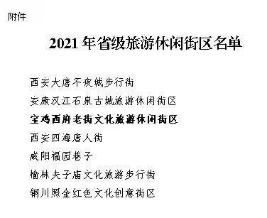 西府老街以多元化、多方式、多角度、多业态为集群的文化交融,打造省内首家以民俗文化为主的综合性旅游场所,成为陕西地区新晋旅游休闲胜地,10月9日由省文化和旅游厅公示,入选首批旅游休闲街区。