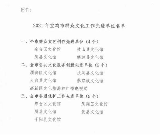 在2021年陕西省第七届农民工诗歌朗诵会宝鸡分会场比赛中,我区选送的的两首诗歌《攻坚脱贫在乡下(组诗)》和《我为新时代鼓掌喝彩》分别荣获一等奖、二等奖。