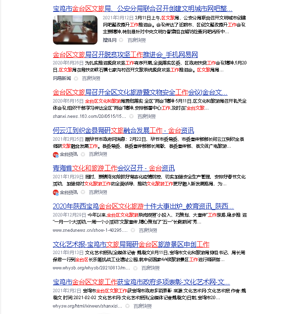 人民日报、学习强国、文化艺术报、网易、腾讯、二三里、宝鸡日报、宝鸡电视台、宝鸡新闻网、微金台、金台发布、金台先锋等100余家新闻媒体转发金台文旅工作及活动开展情况。