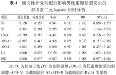 2.3.2 多因素logistic回归分析结果 调整TC、TG、LDL-C、APO-A1、APO-B、BMI、UA水平后,多因素logistic回归分析结果显示,UA、TC是影响男性跟腱断裂发生的独立危险因素(均P<0.05)。见表4。