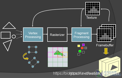 GPU 的图形(处理)流水线如下: ??? 顶点生成:这阶段 GPU 读取描述 3D 图形外观的顶点数据并根据顶点数据确定 3D 图形的形状及位置关系,建立起 3D 图形的骨架。在支持 DX8 和 DX9 规格的 GPU 中,这些工作由硬件实现的 VertexShader(顶点着色器)完成。??? 光栅化计算:显示器实际显示的图像是由像素组成的,我们需要将上面生成的图形上的点和线通过一定的算法转换到相应的像素点。把一个矢量图形转换为一系列像素点的过程就称为光栅化。例如:一条数学表示的斜线段,最终被转化成阶梯状的连续像素点。