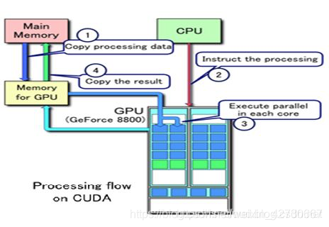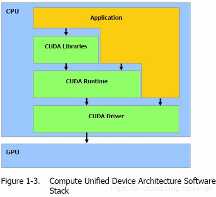 State 变量。 CUDA 开发库:基于 CUDA 技术所提供的应用开发库。CUDA 的 1.1 版提供了两个标准的数学运算库:CUFFT(离散快速傅立叶变换)和 CUBLAS(离散基本线性计算)的实现。这两个数学运算库所解决的是典型的大规模的并行计算问题,也是在密集数据计算中非常常见的计算类型。开发人员在开发库的基础上可以快速、方便的建立起自己的计算应用。此外,开发人员也可以在 CUDA 的技术基础上实现出更多的开发库。CUDA 运行时环境:提供了应用开发接口和运行期组件,包括基本数据类型的定义和各类计算、类型转换、内存管理、设备访问和执行调度等函数。基于 CUDA 开发的程序代码在实际执行中分为两种,一种是运行在 CPU 上的宿主代码(Host Code),一种是运行在 GPU 上的设备代码(Device Code)。不同类型的代码由于其运行的物理位置不同,能够访问到的资源不同,因此对应的运行期组件也分为公共组件、宿主组件和设备组件三个部分,基本上囊括了所有在 GPGPU 开发中所需要的功能和能够使用到的资源接口,开发人员可以通过运行期环境的编程接口实现各种类型的计算。CUDA 驱动:由于目前存在着多种 GPU 版本的 NVIDIA 显卡,不同版本的 GPU 之间都有不同的差异,因此 CUDA 驱动基本上可以理解为是 CUDA-enable 的 GPU 的设备抽象层,提供硬件设备的抽象访问接口。CUDA 提供运行期环境也是通过这一层来实现各种功能的。由于体系结构中硬件抽象层的存在,CUDA 今后也有可能发展成为一个通用的 GPU 标准接口,兼容不同厂商的 GPU 产品。