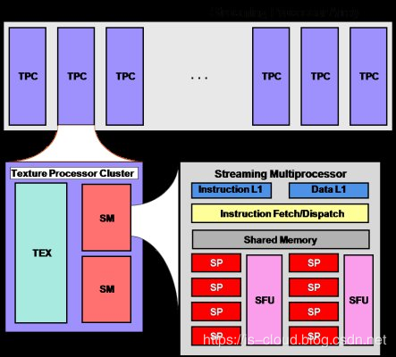 SP(Streaming Processor):是最基本的处理单元,指令和任务最终都是在 SP 上处理的。GPU 进行并行计算,也就是很多个 SP 同时做处理。