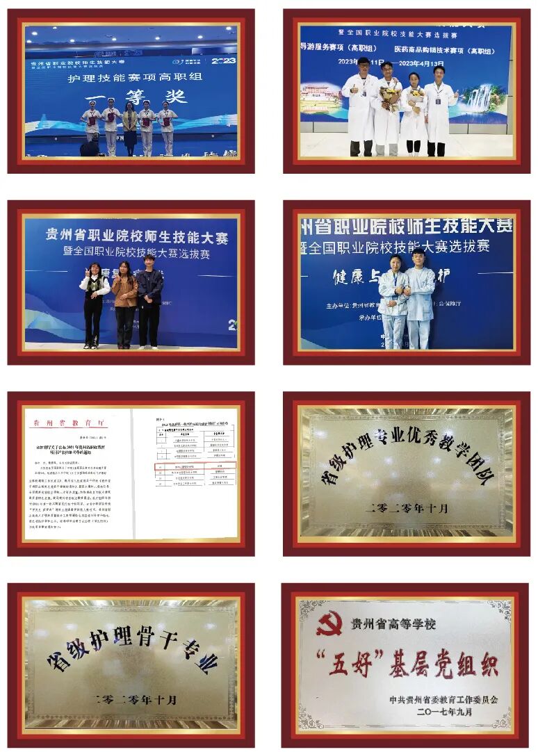 2023 年贵州省57项技能大赛中贵州学校 4月11日 -15日大健康学院共派4支伍参加4个项目比赛:护理技能赛项、康复治疗技术赛项、健康与社会照护赛项、药品购销赛项,其中康复治疗技术赛项、药品购销赛项为今年首次举行比赛项目。经过5天激烈拼搏,共获得一等奖2项,二等奖4项,三等奖2项的好成绩,其中学生组护理技能赛项进入国赛。