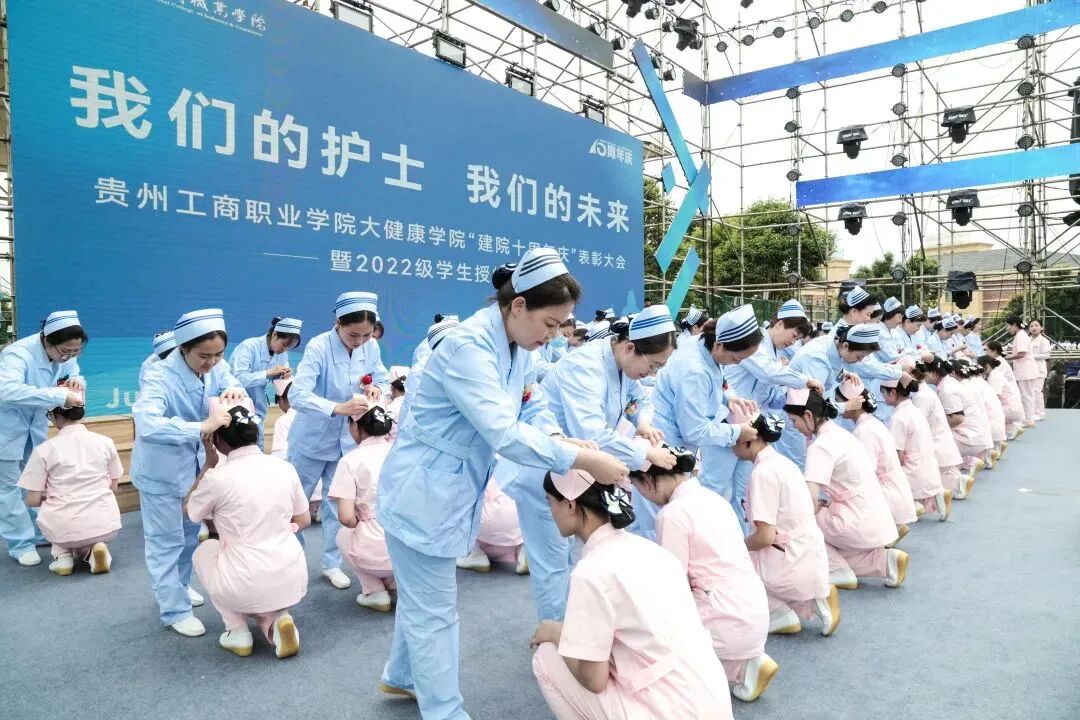 贵州工商职业学院大健康学院以南丁格尔精神育人,帮助护生成功。每年开展授帽仪式、护理技能锻炼等多种文化育人活动。