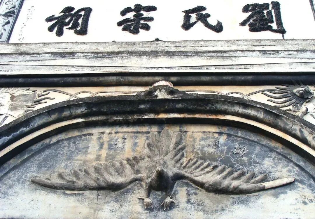 刘氏宗祠始建于乾隆二十七年(公元1762年),1933年重修。祠坐东朝西,占地250平方米。拱形门枋上雕刻着“白水高名千秋尚在,香山重望万古犹成”的门联。拱门圆顶中央,一只展翅欲飞的鲲鹏,头朝前方。拱门上围,有“二龙抢宝”雕塑。门角上,是两头昂首阔步的麒麟。正面祠壁上方,“昭勇将军”四字威风凛凛地站着,其下横卧着凸塑的“刘氏宗祠”。祠门两侧,六根墙柱直插檐顶,将面壁分成几组对称的条形板面。右边的假窗框内,雕有《昭勇将军大战堤灵壁画》;左边是《昭勇将军攻破济南城凯旋图》。两侧的墙上,除了中国民间文化中传统的花鸟虫鱼,还有狮子望楼台、喜鹊闹红梅、翠竹点头、百花齐放、金鸡欢唱、松鼠起舞、蝙蝠飞扑、阳雀催春、群兽朝王、百鸟朝凤等极具象征意味的图案,神话传说中尊贵的麒麟、鲲鹏、紫燕等也跃然墙上。而支撑着这一切的,是发端于西方的哥特式风格,鹰和羊也高高地竖立在屋脊上。在牌楼两侧的砖柱上,以对联的形式醒目地凸着两行字母,是何文字,字义何解,今人费尽了脑汁,也百思不得其解……王氏村民自称其祖上为太原琅琊望族,故将宗祠命名为“太原祠”。该祠始建于光绪三十四年(公元1908年),占地300平方米,祠座东朝西南,祠前有两个方形晒坪。两面外墙脊下,群图装饰。祠门上方,高高地竖着九棵大白菜塑雕。大门两侧的砖柱上,缠绕着“双龙抢宝”图案,据说龙的鳞片还是特意到景德镇定制的。门楣左边作《摩洁作画吟诗图》,右边为《秦王嬴政拜王翦为将图》;此外尚有王子求仙、王浑受降、王佑种槐、荆公视农等浮雕,全是太原王氏典故。
