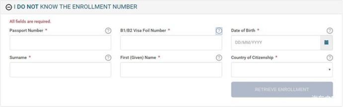4. 依次填入护照号码、签证号码(在美签签证页面找红色的),生日,姓,名,国籍。