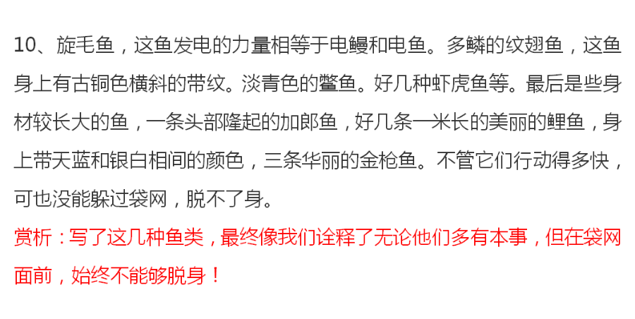 《海底两万里》各章内容概括一、飞逝的巨礁:1866年起,出现了一件大怪事。海洋中发现一个庞然大物,就像飞逝的巨礁,多艘航船莫名其妙的被撞裂了。公众坚决要求把着头怪物从海洋里清除掉。二、赞成与反对:对怪物主要有两派看法,一派认为是一种力大无穷的怪物,另一派则认为是一艘动力强大的“海下船”。我(法国巴黎自然史博物馆教授阿罗纳克斯)认为,怪物是一种力量大得惊人的“独角鲸”。美国海军部组织了一艘名为亚伯拉罕林肯号的快速驱逐舰,准备去清除“怪物”。我应邀随行。三、随先生尊便:我的仆人孔塞伊不假思索的说:“随先生尊便。”跟我一同上了以法拉格特为舰长的驱逐舰。驱逐舰从布鲁克林码头扬帆起锚,向大西洋全速前进。四、内德·兰德:舰长和全体海员同仇敌忾,决心一定要捕获独角鲸。只有加拿大人捕鲸手内德·兰德对独角鲸的存在表示怀疑。五、向冒险迎去:舰只在太平洋上游弋。大家的眼睛睁得大大的,努力地观察海面。三个月过去了,海员们开始泄气了,开始怀疑自己这次搜寻行动的意义。半年后,海员们要求返航。舰长许诺最后搜寻三天,三天后如果还无结果就将回去。到了规定期限的最后时刻,一向无动于衷的内德·兰德突然喊叫起来,他发现了怪物。六、全速前进:林肯号企图捕获独角鲸,而独角鲸却若无其事地同林肯号捉迷藏。经过一夜一天的追逐周旋,到第二天晚上,双方形成对峙。当林肯号向独角鲸发起进攻时,独角鲸却突然熄灭电光,向林肯号喷射大水。林肯号遭遇了灭顶之灾。七、不知其种属的鲸鱼:我被抛入海里,与孔塞伊在海中相依为命。正当筋疲力尽就要沉入海底时,被躲在独角鲸背上的内德·兰德拉出水面。内德说,这怪物不是鲸,是钢制的。我这才断定它是一艘潜水艇。我们在艇顶苟延残喘。天亮时,艇盖掀开,八个壮汉出来,把我们拖进艇里去。八、动中之动:我们三人被关进一间黑屋子。半小时后,突然眼前一亮,进来两个人。我们用法语、英语、德语和拉丁文进行自我介绍,对方均无反应。他们走了,侍者送来食物,我们饱餐后就进入了梦乡。九、内德·兰德的怒火:潜水艇浮出海面更换新鲜的空气。三人仍被关在铁屋子里,内德怒气冲天,他想逃跑,又想夺取这条艇。一个侍者进来时被他出其不意地打倒在地掐得半死。这时候,一个说法语的人出现了。十、海洋人:讲法语的就是这艘鹦鹉螺号潜水艇上的尼摩(意为“不存在的人”)艇长。他说第一次见面保持沉默是为了了解我们,其实那四种语言他都听的懂。他要我们听从他的命令,否则将置我们于死地。尼摩艇长说,他们的衣食用都取自海洋,他热爱海洋,海洋中没有争斗、厮杀和独裁。十一、鹦鹉螺号:尼摩艇长带我们参观“鹦鹉螺号”上有一万两千册藏书的图书室,给我抽用海带制成的雪茄,观赏他收集的标本,又看了他为我准备的雅致的房间以及他自己住的简陋的房间。十二、一切都用电:尼摩艇长给我们介绍房间里各种仪表的用途,如何开采海底矿藏,如何发电,如何提供空气,又介绍一只小艇的用途,还带我参观了厨房。十三、几组数字:尼摩艇长向我介绍潜水艇的概况、构造、动力、发光、建造过程等。十四、黑潮:海底探险旅行正式开始。潜艇在海面以下五十米深处穿越黑水流。我和两位同伴尽情观赏形态美丽、活泼可爱的鱼儿。十五、一封邀请信:尼摩艇长给我一封邀请信,请我到海底森林打猎。十六、漫步海底平原:我和孔塞伊穿上防水衣服随尼摩艇长漫步海底平原,欣赏海洋奇物。十七、海底森林:我们来到海底森林。仔细观察海底生物。还在海底睡了几个钟头。来到克雷斯波岛的海底绝壁,遇到巨形海蜘蛛,打到一只海獭,躲过了角鲨的侵袭。十八、太平洋下四千米:潜艇在太平洋下穿行,令人大开眼界。一天,看到一条沉船,凄惨的海难情景令人惊悚。十九、瓦尼可罗群岛:尼摩艇长从瓦尼可罗群岛海底遗物中揭开在十八世纪末两艘法国探险船只失踪的真相。二十、托雷斯海峡:潜艇经由地球上最危险的海峡——托雷斯海峡前往印度洋,中途触礁搁浅。经艇长同意,我和两位同伴坐小艇上格波罗阿尔岛去。二十一、陆上几日:我和两位伙伴一起上小岛采摘野果、狩猎,捉到一只被豆蔻汁给迷醉的极乐鸟。二十二、尼摩艇长的闪电:土著的巴布亚人发现了我们,他们追赶到沙滩,后来还划来独木舟围住鹦鹉螺号,企图向我们发起进攻。尼摩艇长将电通到艇外壳,土著人触电后吓得魂飞魄散退走了。鹦鹉螺号被涨起来的海潮托起,离开了珊瑚石床,时间正如艇长所预料的分毫不差。二十三、强制性睡眠:潜艇在印度洋行驶。尼摩艇长对不同深度的海水温度进行测量,发现水下一千米以下的海水是恒温的。我们目睹了有趣的一幕:海面上磷光闪烁,把大海照得如同白昼,原来是一些小水母球发光造成的。有一天,尼摩艇长突然下令将我们关起来,并强制我们睡眠。二十四、珊瑚王国:第二天,艇长带我们来到五彩缤纷的珊瑚王国,把一位因伤而死的艇员安葬在珊瑚墓园里。二十五、印度洋:鹦鹉螺号在印度洋穿行,我们看到了基灵岛,看到了“船蛸”,在孟加拉湾漂浮着无数的尸体,还看到了一望无垠的“牛奶海”。二十六、尼摩艇长的新建议:艇长给我们介绍原始的采珠法,采珠人悲惨的生活,建议我们参观锡兰岛的采珠场。二十七、一颗价值千万的