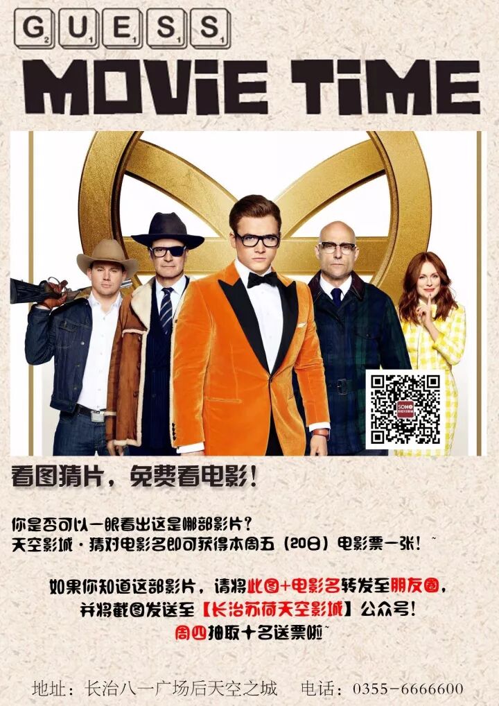 2、关注公众号,猜出电影名+此图转发朋友圈【转发截图+联系方式+姓名】发于公众号,每周四公布中奖名单!每周五都能免费看电影!